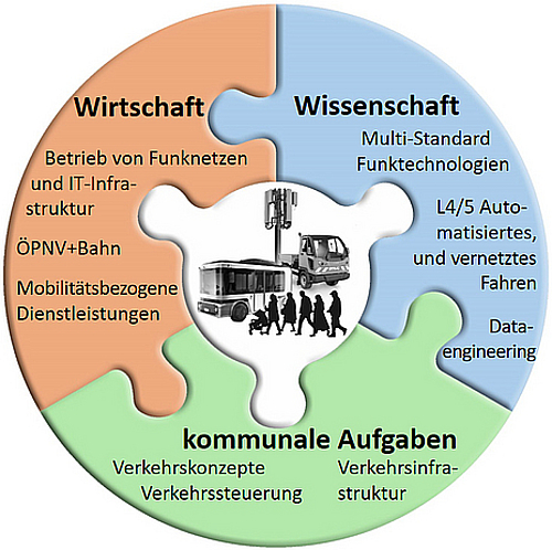 Nachhaltige Mobilitätsstrategien als Komponente einer modernen und intelligent vernetzten Gesellschaft verlangen die gemeinsame Entwicklung von Verkehrs-, Daten- und Netzwerkinfrastrukturen. Bestes Beispiel dafür sind Pilotprojekte zum autonomen Fahren im Bereich des ÖPNV, bei dem sich der notwendige teleoperierte Betrieb nur mit Leistungsmerkmalen des 5G-Netzes (geringe Latenz, höchste Zuverlässigkeit und Abdeckung, Fahrzeug-zu-allem-Vernetzung) realisieren lässt.